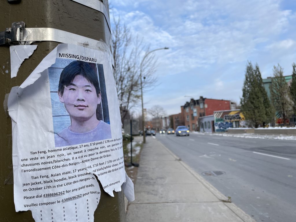 Anyone who believes they have information on the whereabouts of Feng Tian is asked to call 911 or contact Info-Crime Montreal anonymously and confidentially at 514 393-1133 or online