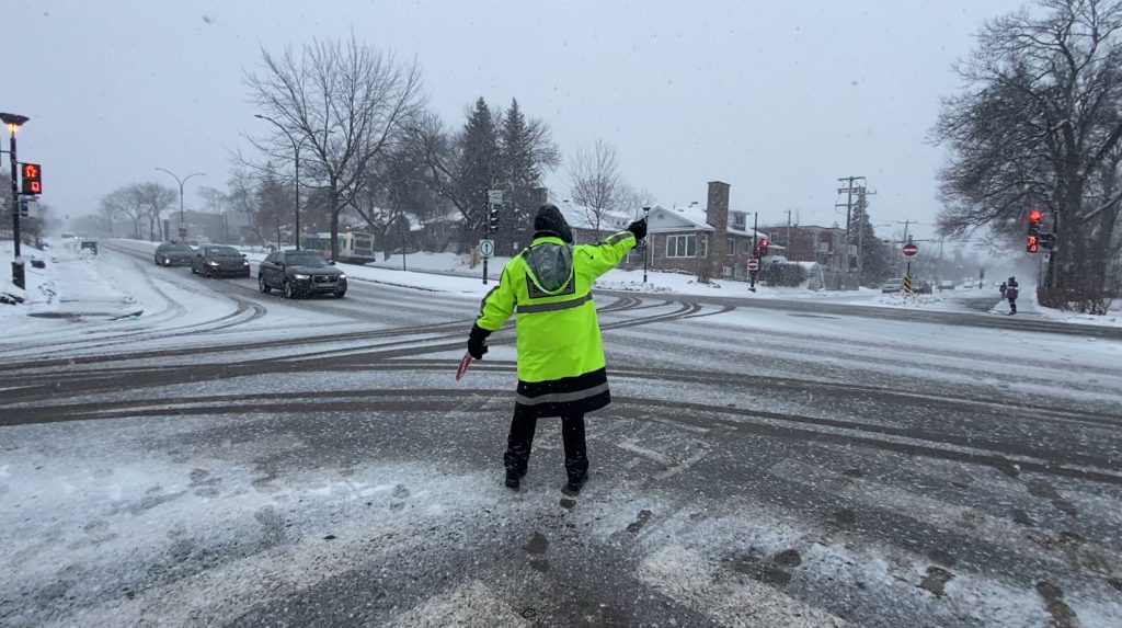 “They transferred me here for the moment because there’s missing workers. Here it’s a code 1, its priority, it takes a crossing guard or an officer here,” said Fernand Desmarchais, Montreal crossing guard.