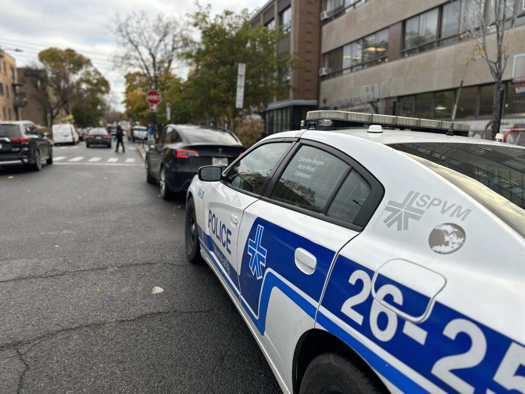 SPVM patrol cars were on site Friday morning. The police force says it has stepped up their presence around places of worship and establishments as they see a rise in hate crimes and incidents in the last few weeks amid the Israel-Hamas war.