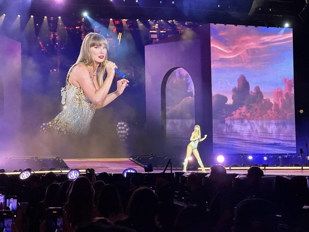 While belting out her 2019 hit “Cruel Summer,” she asked the crowd to join in on the bridge as she skipped down the ramp to the front of the stage. When the song ended she stopped to take it all in, slowly pointing to the crowd around the arena as each section erupted in applause.