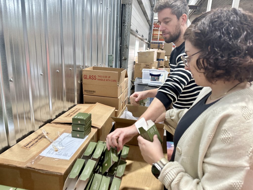 They picked up large buckets of soap in Saint-Lin-Laurentides and drove the supplies back to their production space in Repentigny.