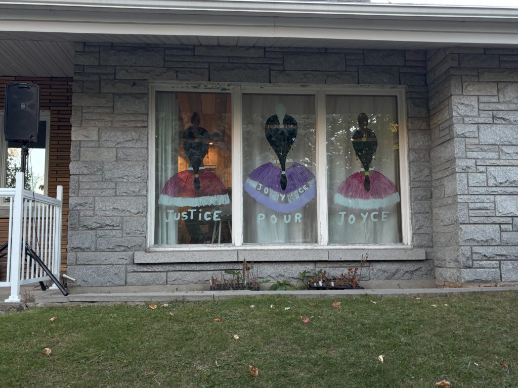 Speeches began at around 7 p.m. at the door front of the centre, beside three painted windows depicting silhouettes with the words “Justice for Joyce.”